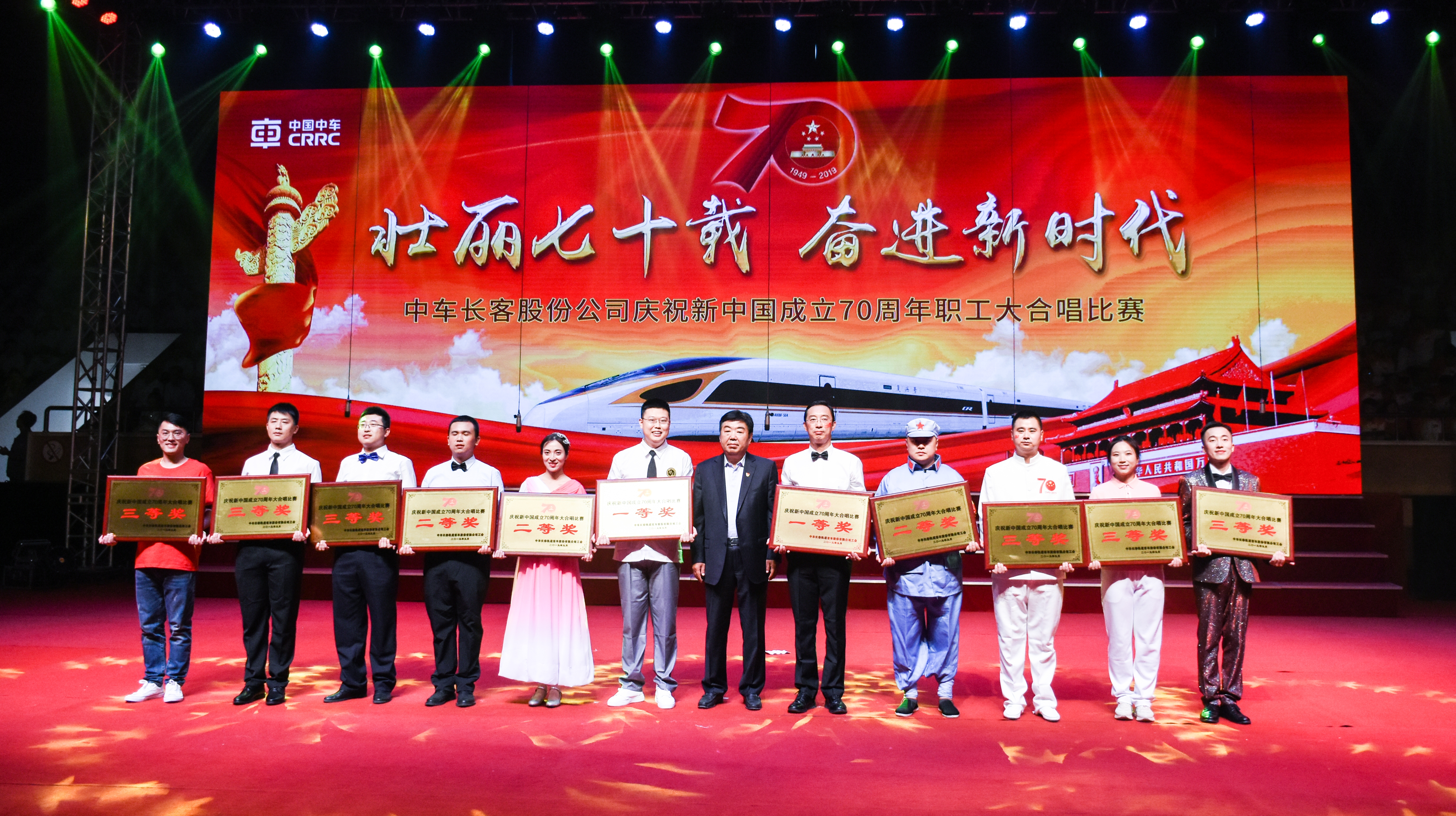 金风玉露人安泰,丹桂香动九州同,9月27日下午3:00,长客体育馆内红旗飘扬,红歌嘹亮,红绸舞动,公司“壮丽七十载 奋进新时代”庆祝新中国成立70周年职工大合唱比赛正在这里举行,来自公司各单位的11支参赛队伍的1300余名选手欢聚一堂,用歌声抒发对祖国的热爱之情,向伟大祖国母亲深情表白,公司党委书记,董事长王润,总经理安忠义等高管,一级单位党政领导等出席活动, 由公司女职工全健排舞比赛一等奖获奖单位——工程研究中心选送的舞蹈《美丽中国我的家》拉开了本次比赛的序幕,“五星红旗迎风飘扬 神马影视,胜利歌声多么响亮,歌唱我们亲爱的祖国,重新走向繁荣富强……”全体起立高唱《歌唱祖国》,唱响了中华儿女心中的赞歌,也唱出了长客人的激情与豪迈,随后,《七律·长征》《光荣与梦想》《我和我的祖国》等11首耳熟能详的歌曲,从旧中国的苦难深重到新中国的傲立东方,从奋进新时代的豪迈之情到走向复兴的光荣梦想,从长江之歌的气吞山河到我和祖国的血脉相连,从春天的秧苗,秋日的硕果,再到北国白雪,南海碧波的拳拳依恋,从党的坚强领导到民族大团结,唱出了热爱祖国的心声,唱出了祖国复兴的主旋律,讴歌了祖国70年的沧桑巨变,伟大成就, 与祖国同步,与时代共奋进,纵观长客波澜壮阔的65年,历经六次质变,今天也昂然迈进跨国经营的新时代,几代长客人为轨道交通事业的壮美画卷写下了浓墨重彩的一笔,“通过参加合唱比赛,一是员工用歌声表达对新中国成立70周年一路走来,一路繁荣昌盛的美好祝愿,二是通过员工的积极参与,体现员工对企业的归属感,对事业的使命感,以及对团队的凝聚感,三是大合唱比赛能够为员工进一步完成今年的生产任务,兑现公司‘十三五’战略目标,做好身体和精神的储备,真正践行交通强国,铁路先行的理念,”高速动车组制造中心总经理曲双感慨地说, 各个参赛队采用歌伴舞,领唱,合唱,器乐弹奏等丰富多彩,创意十足的艺术形式歌唱祖国,祝福祖国,热爱祖国,复兴祖国,大家群情激昂,现场瞬间变成欢乐的海洋,营造了喜庆,欢腾,祥和的浓浓国庆氛围,“我们转向架人用歌声诠释对祖国的热爱,在工作岗位上我们也将以‘科学,严谨,精准,法治’的工业文化擦亮金名片,以实际行动向新中国成立70周年献礼,”在比赛现场,转向架制造中心维修车间党支部书记杨雪达说,2019年刚入职的大学生翟方宁也表示,很荣幸参加庆祝新中国成立70周年公司举办的大型活动,在今后的工作中自己将满怀激情,为高铁事业贡献青春与智慧, 在新时代的号角中,我们再一次出发,歌声与汗水一路挥洒,追梦的人们雄姿英发,历时近1个半小时的比赛在高铁之声合唱团《再一次出发》的歌声中圆满落下帷幕, 高铁之声爱乐团的吉他弹唱《童年》《不再犹豫》平添了合唱比赛的浪漫之情, 伴随着欢快的乐曲,王润为铁路客车业务部,城铁客车业务部,海外业务部联队,长春车辆公司等2个一等奖单位代表颁奖,安忠义为转向架制造中心,内饰件分公司,冲压件分公司,动力厂联队,高速动车组制造中心等3个二等奖单位代表颁奖,党委副书记,工会主席王献红为客车制造中心,工程技术中心等6个三等奖单位代表颁奖, 今天,我们高举习近平新时代中国特色社会主义伟大旗帜,不忘初心,牢记使命,砥砺前行,在公司“十三五”战略目标的引领下,我们团结一心,追求卓越,奋勇向前,用最真诚的笑容,向新中国庆祝生日,用最美的歌声向祖国母亲献上祝福,共同祝愿伟大祖国繁荣昌盛,前程似锦。