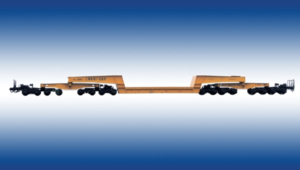 适用于运输机电,冶金,化工等行业的重型 神马影视,超限大型货物,主要由一个凹底架,二个中底架,四个小底架,八台2E轴焊接构架式转向架以及液压旁承装置,车钩缓冲装置,制动装置等组成,采用C级钢13号下作用车钩和MT-3型缓冲器,采用了折角结构,液压旁承等先进技术,具有载重大,自重系数小,曲线及道岔通过性能好,运行速度高,过桥速度限制小,承载面低,装卸加固货物简单方便等特点,其主要技术经济指标先进,性能良好,是目前我国载重最大,凹底架首次采用折角结构的新型凹底平车。