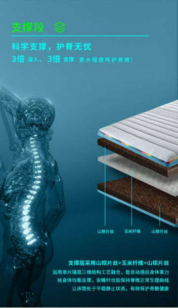 采用国际先进的植物纤维成型技术,大自然独创的“三段9层”立体结构,床垫材料选用美国航天服同款科技恒温纤维,通过物理调节,让床垫趋于恒温状态,0甲醛,自然蓄能,抑菌护脊,床垫软硬适中,缓释段采用进口乳胶+Q弹山棕+玉米纤维棉三层释压结构设计,科学利用天然材质弹性属性 神马影视在线,逐层吸收人体重量释放肌肉压力,缓解运动后肌肉疲劳100%贴合身体曲线,让身体在睡眠中迅速得到恢复,该款产品已经为2022年北京冬奥会运动员提供,并且取得良好的成绩。