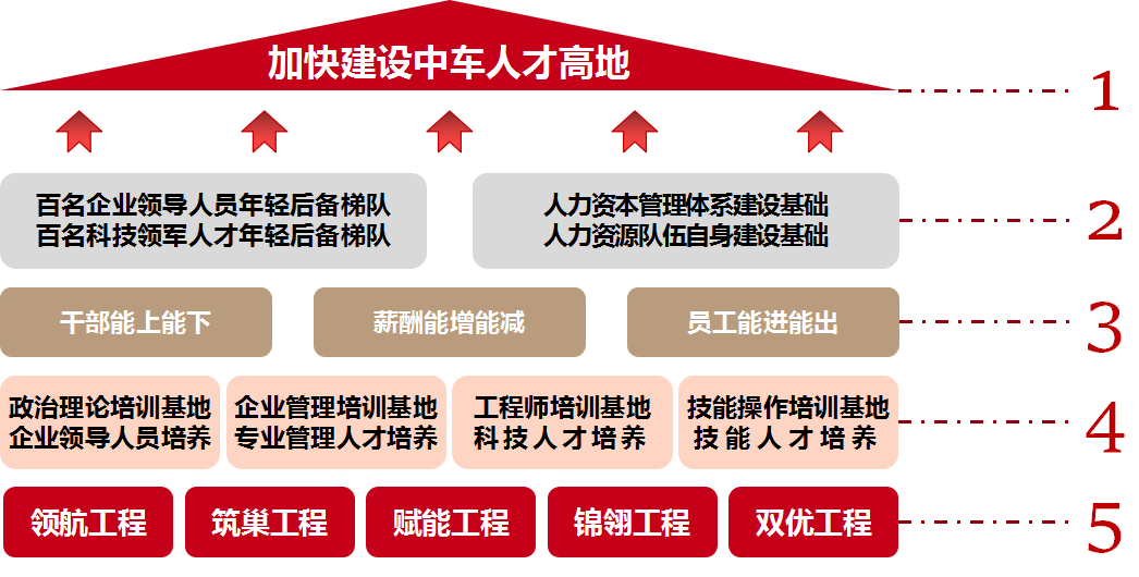 推进实施“12345”人才工作总体部署,“1”是聚焦一个主题,即加快建设中车人才高地,“2”是打造“双梯队”,夯实“两基础”,即重点打造100名左右企业领导人员年轻后备梯队和100名左右科技领军人才年轻后备梯队,着力夯实人力资本管理体系建设基础和人力资源管理者队伍自身建设基础,“3”是深化三项制度改革,即全面深入推进市场化经营机制改革,“4”是建设四类培训基地,强化四类人才培养,即建设“政治理论,企业管理,工程师,技能操作”四类培训基地,科学性,系统性,针对性,阶梯性培养企业领导人员,专业管理人才,科技人才,技能人才四类人才,“5”是实施人才强企“五项工程”,即领航工程,筑巢工程,赋能工程,锦翎工程 神马影视高清,双优工程。