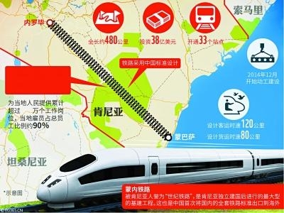 据了解,作为肯尼亚“2030年远景规划”的旗舰项目,蒙内铁路可将当地的客运时间从原来的十几个小时缩短到4.5个小时。蒙内铁路通车后将主要承担肯尼亚、乌干达、卢旺达、布隆迪、刚果(金)和南苏丹等国的货物运输任务。