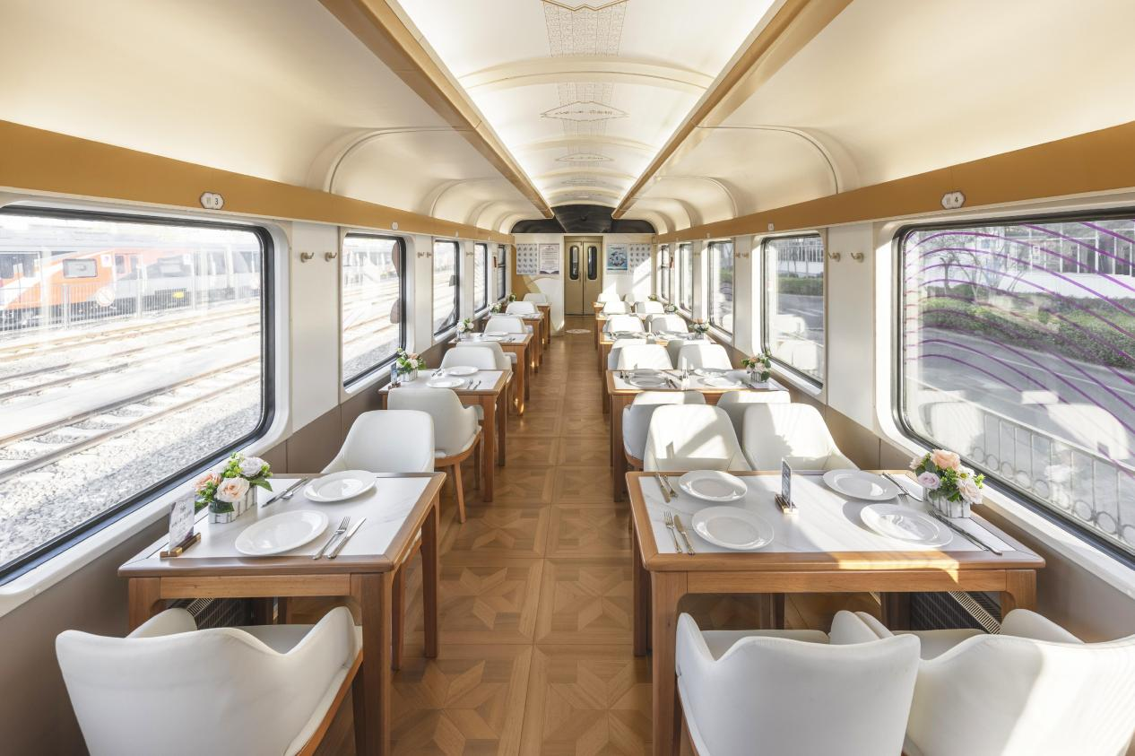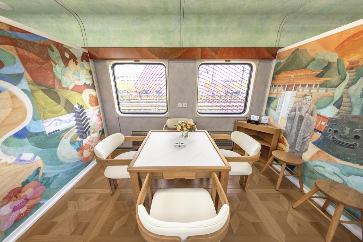 提供“吃住行游购娱”一站式服务,全新打造2节多功能车厢,设置吧台,茶室,棋牌室,休闲区,儿童游乐区,情侣卡座,观景区等多种功能区,满足亲子游,情侣游,银发游等多样化旅游需求 神马影院,设有怀旧餐车和美食餐车。