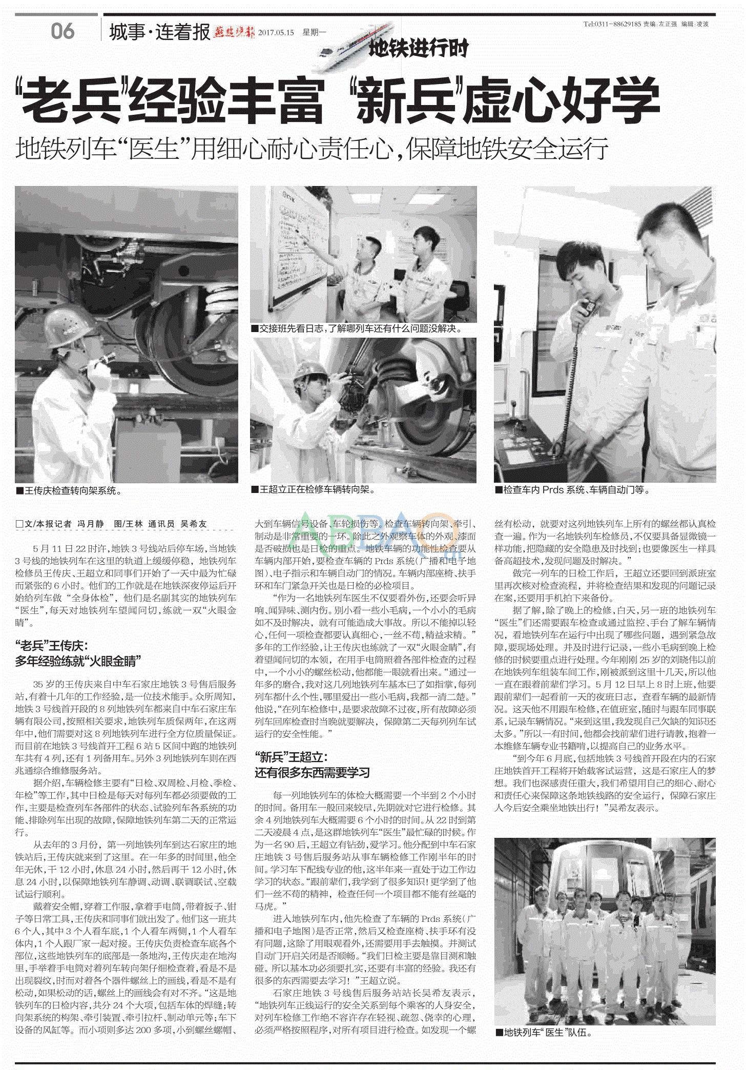 “到今年6月底,包括地铁3号线首开段在内的石家庄地铁首开工程将开始载客试运营,这是石家庄人的梦想。我们也深感责任重大,我们希望用自己的细心、耐心和责任心来保障这条地铁线路的安全运行,保障石家庄人今后安全乘坐地铁出行!”吴希友表示。