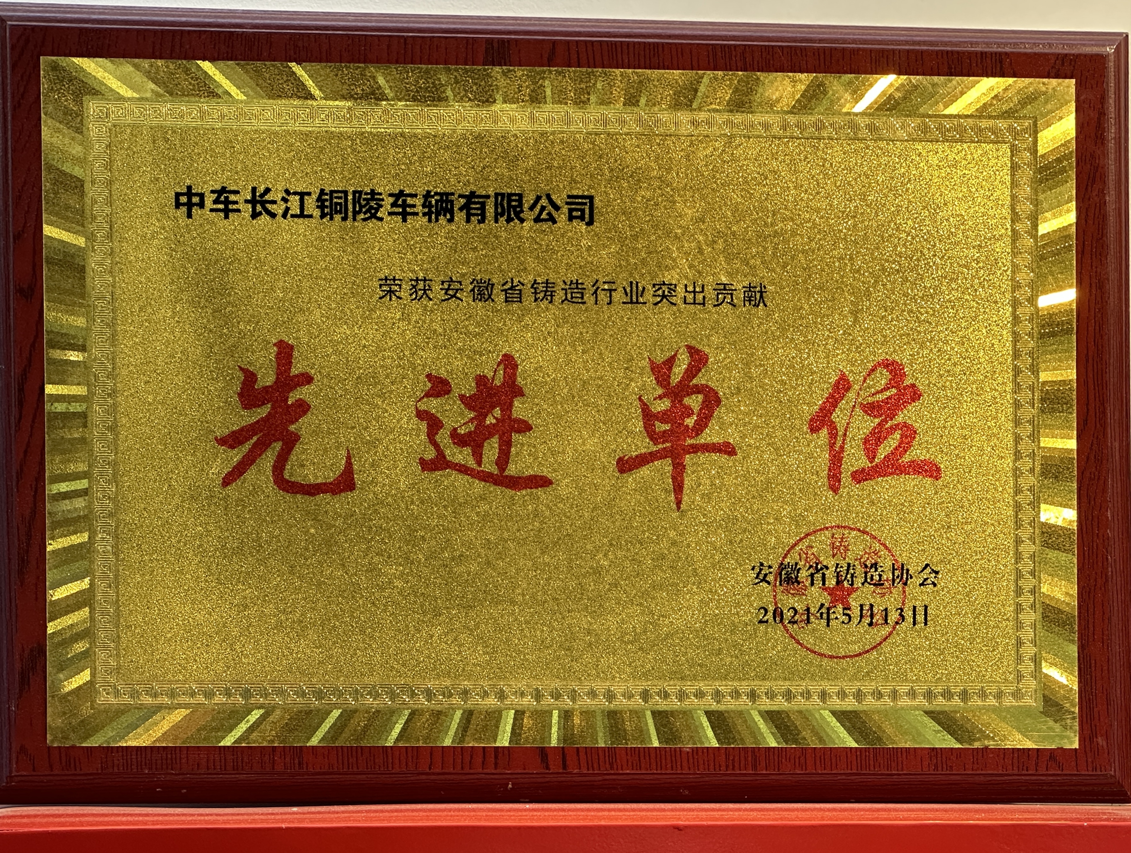 2021年被评为安徽省铸造行业突出贡献先进单位