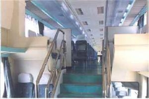 双层内燃动车组分上下两层,根据用户要求设计成为硬座车,软座车,硬卧车,软卧车 神马影视在线,上下层间设楼梯,楼梯可为往返式或旋转式,四角设卫生间,电器室,乘务室或播音室等,整列设空调装置,使旅客的旅行舒适遐逸。