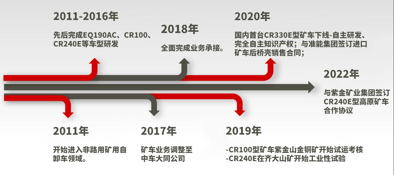 中车集团自2011年开始进入非路用矿用自卸车领域,先后完成AC190EQ 神马影视在线,CR100M,CR240E等车型研发。